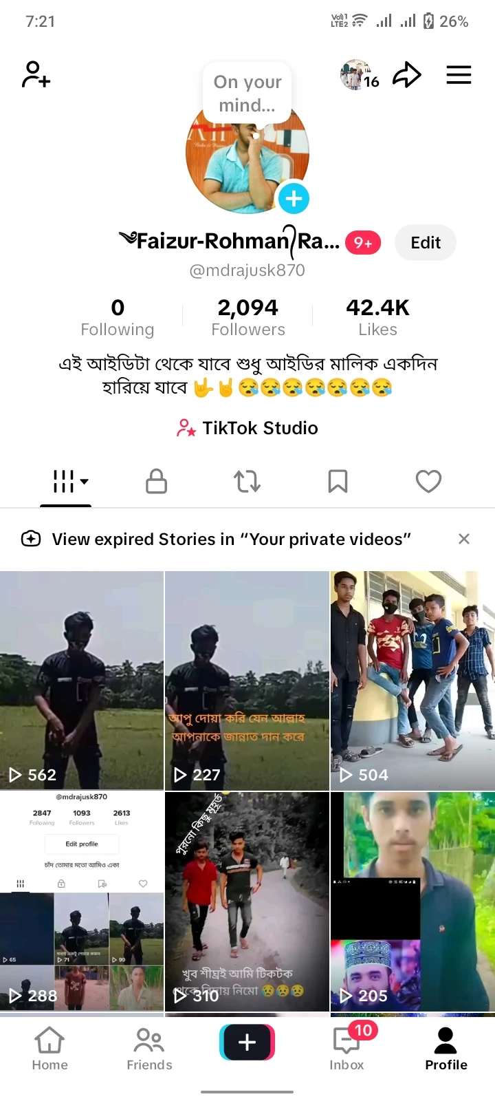 আমার একটা টিকটক আইডি আছে ফলোয়ার (16k)